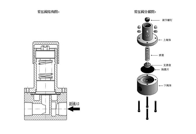 1: 背壓閥用于防止液體在重力作用下自流(或虹吸),這時候一般選用大于液體自身壓力即可,如防止液位為2米藥箱中的液體自流,可選用壓力大于0.02MPa的背壓閥,一般選用0.1MPa即可。