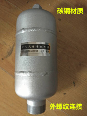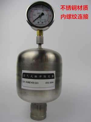 空氣式脈沖阻尼器是一個密封的罐體,依靠液體直接壓縮罐內的空氣起到緩沖的效果。空氣式阻尼器最大的弊端就是里面的空氣會逐漸溶解到輸送介質中,導致可壓縮的空氣越來越少,能起到緩沖的作用也隨之減小,需定期將阻尼器從設備上拆卸后排空里面的介質,保證內部的空間,所以在使用過程中維護稍顯麻煩。但是其價格相對低廉,所以適合一些對緩沖要求不是太高的系統使用。
